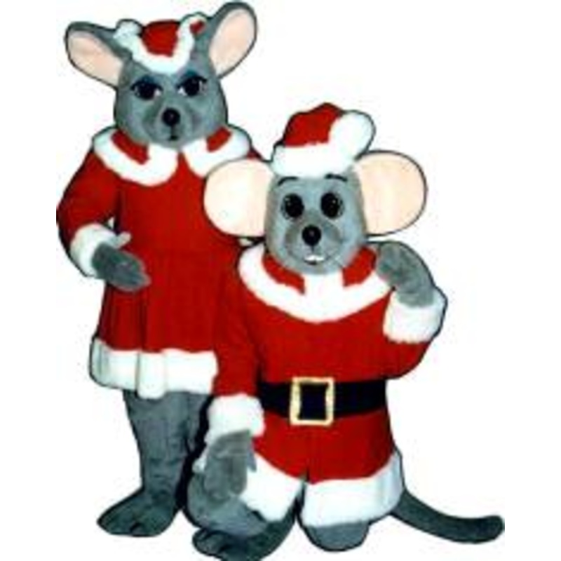Male Christmas Mouse includes Over the head mascot head with hat, gray body with white trimmed jacket, hands & shoe covers.