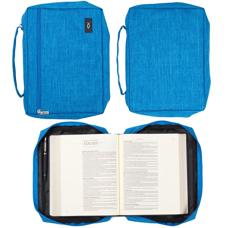 - Elegant Design: Features a Jesus Fish patch, symbolizing faith, on a stylish light blue polyester cover that is both modern and meaningful.