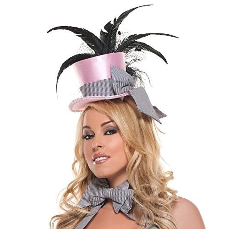 Cigarette girls may be a profession of the past but you'll look authentic when you pair this dainty mini hat with your cigarette girl costume for Halloween or decade inspired party.Includes: Satin mini top hat with an oversized gray bow and black plumes fa