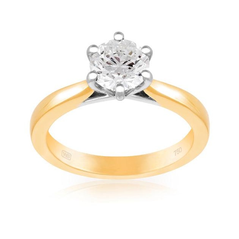 Celebrate the start of your forever with this breathtaking Claw Set Solitaire Diamond Engagement Ring in 18ct Yellow and White Gold. Featuring a classic round brilliant cut diamond weighing 1.00 TDW, this stunning ring will make an unforgettable impression. Its luxurious combination of yellow and white gold makes it the perfect symbol of your eternal love. Let this timeless ring be a reminder of your everlasting commitment to each other.