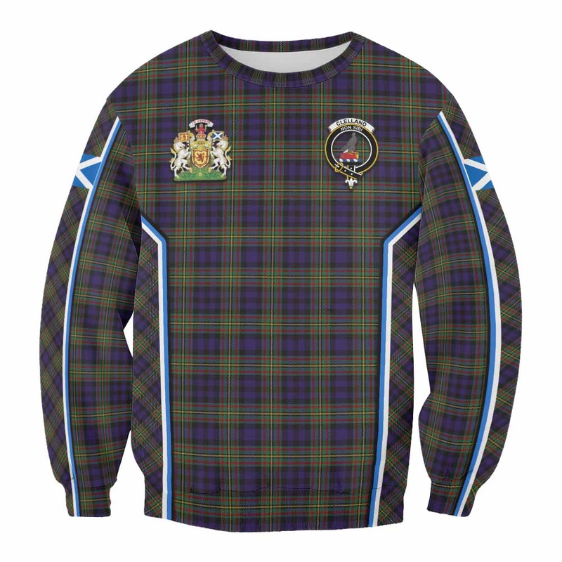 Clelland Tartan Crest Sweatshirt Scotland Coat of Arm Flag Style