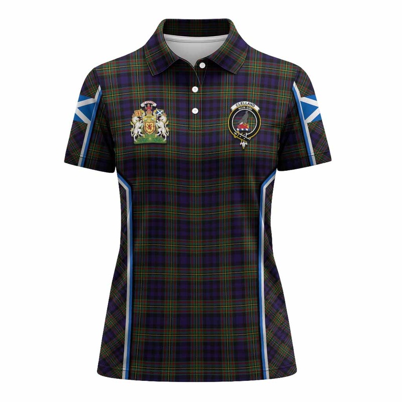 Clelland Tartan Crest Women’s Polo Shirt Scotland Coat of Arm Flag Style