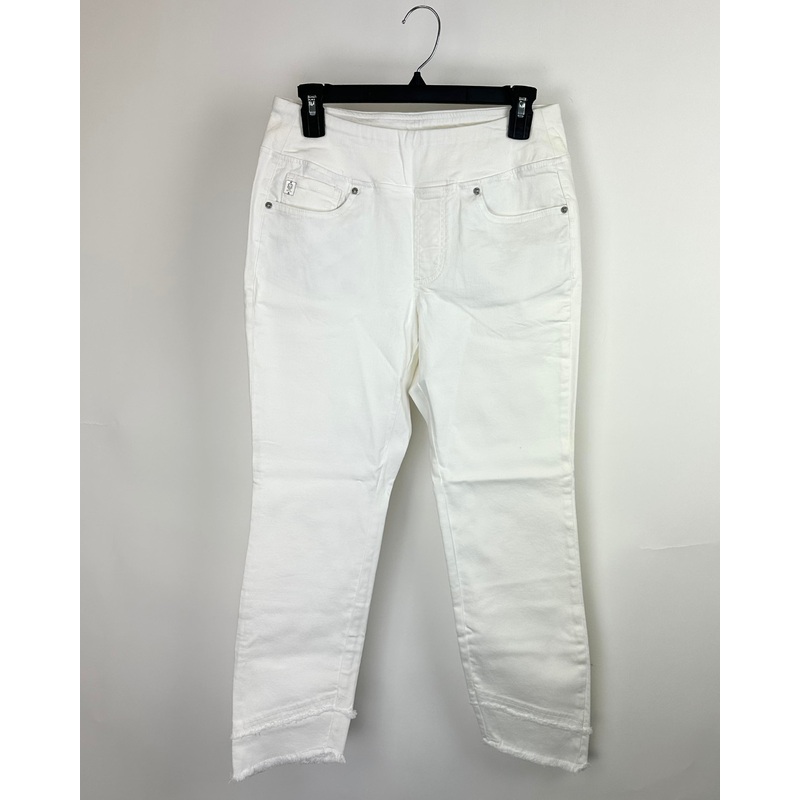 Cloud White Stretch Frayed Pants – Size 6