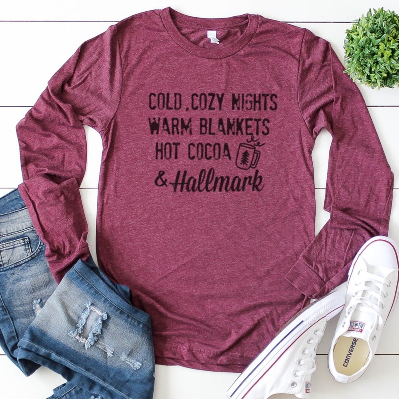 Cold, Cozy Nights Warm Blankets Hot Cocoa & Hallmark-Long Sleeve-Plus Sizes