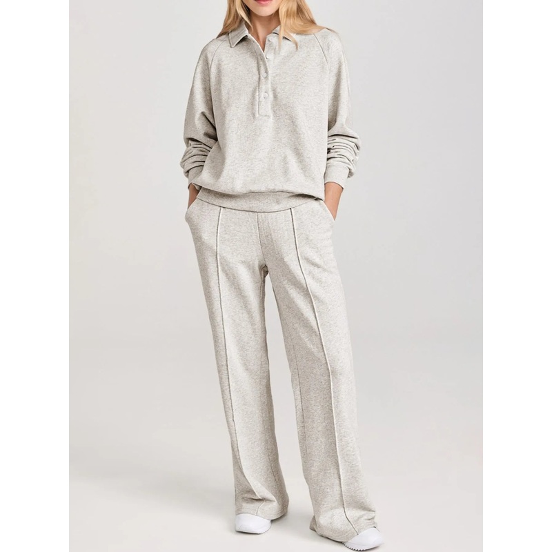 Be the first to review “Collared Sweatshirt and High Waist Pants Active Set Light Gray M”