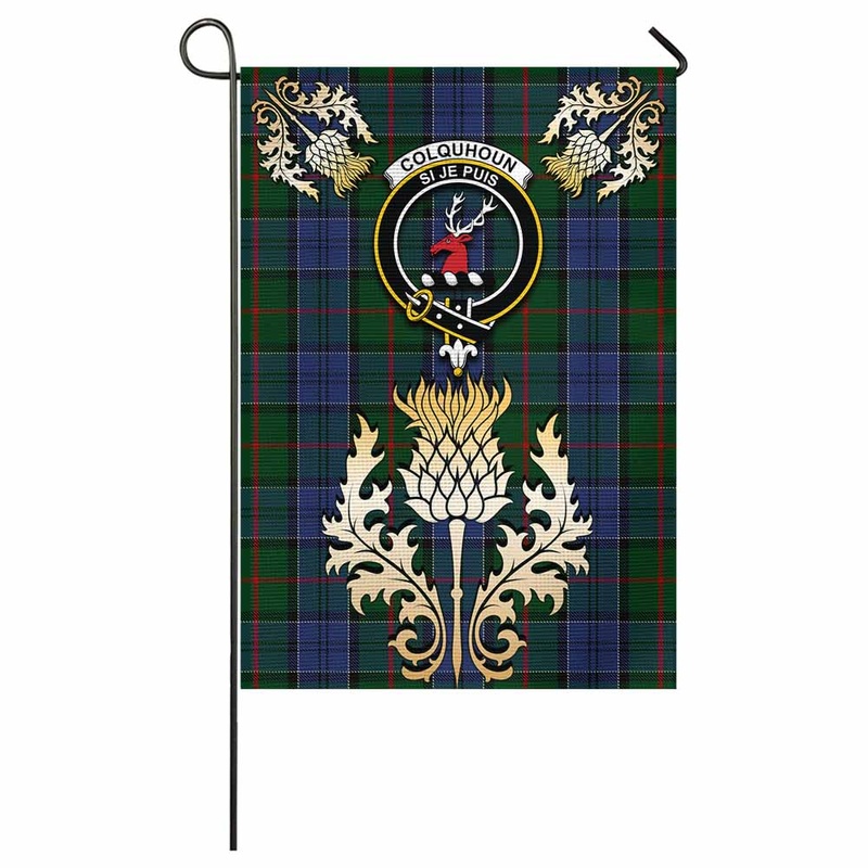 Colquhoun Tartan Garden Flag with Golden Regal Scottish Thistle EmblemEmbrace your Scottish heritage with the Garden Flag a vibrant emblem of culture, tradition, and pride. Designed for those who cherish their ancestry, this flag speaks to everyone who fee