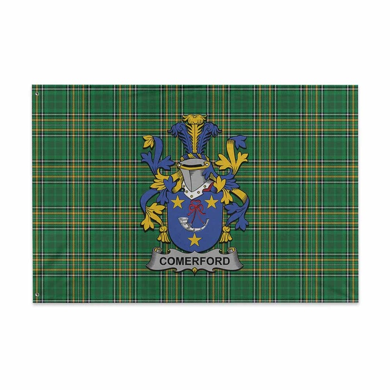 Comerford Irish Clan Tartan House Flag with Coat of Arms