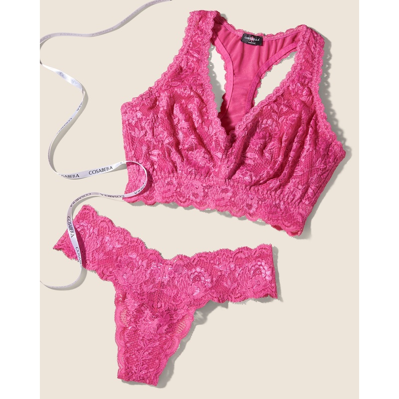 Conjunto De Tanga Cutie Y Bralette De Espalda Cruzada Racie Curvy Victorian Pink P
