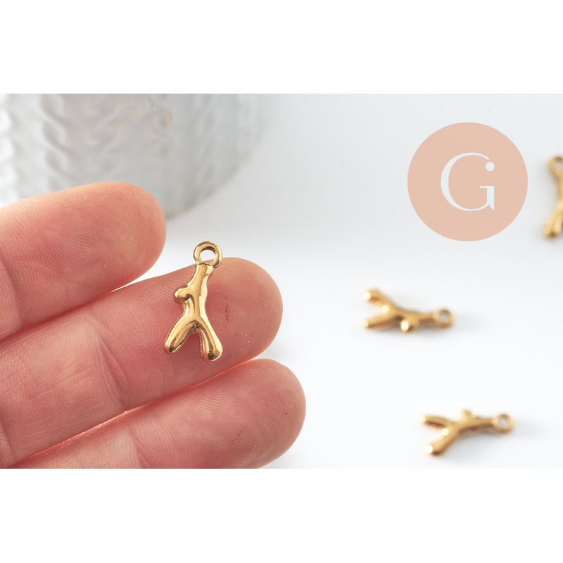 Coral branch pendant 304 IP stainless steel gold 18mm, x1 G9835