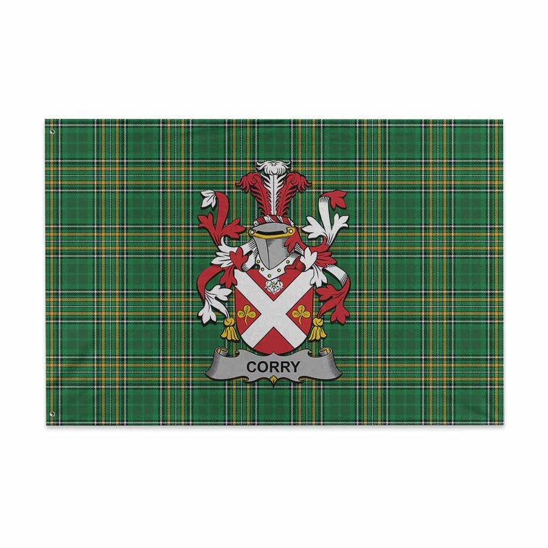 Corry Irish Clan Tartan House Flag with Coat of Arms