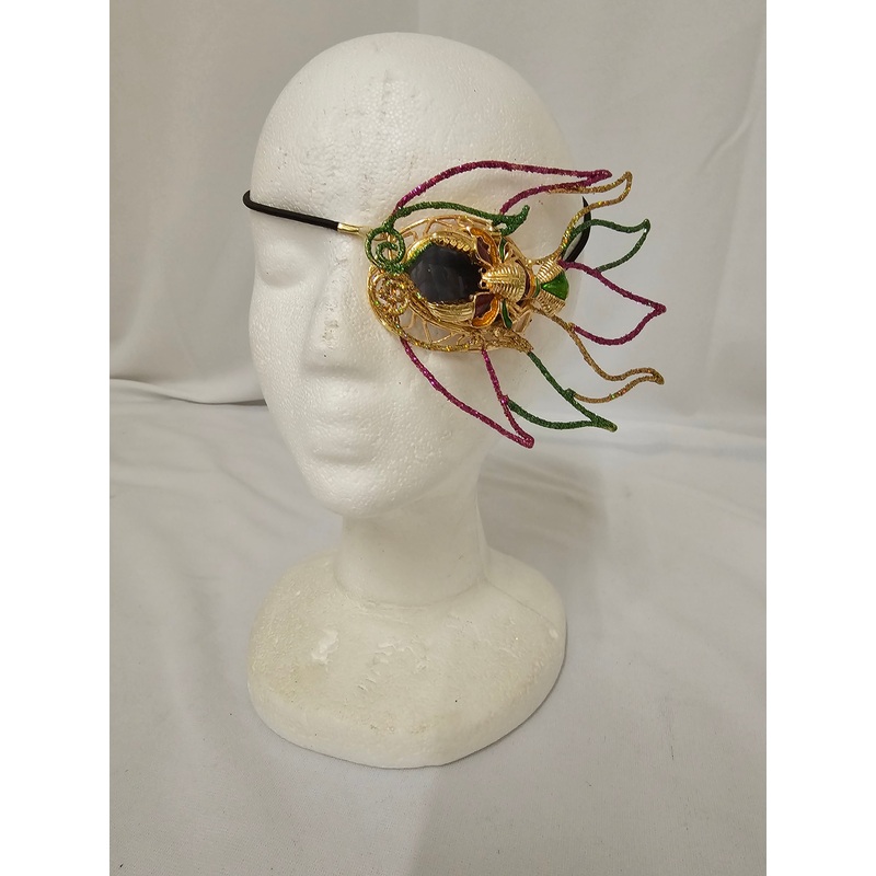Mardi Gras Crawfish Eyepatch with Waxed CordVery Good Quality.Size: One sizeIncludes: 1 Eyepatch with Waxed Cord & hook closureColor: Gold, Green, PinkMG55163