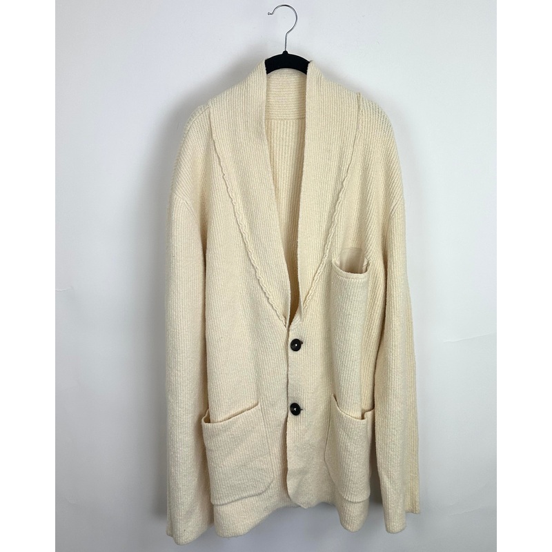 Brand new with tags donated from the designerReunited Clothing cream color sweater with deep V neckline, long sleeves, 2 large & 1 small front pockets, double button up closure with chocolate brown buttons in a soft, thick fabric.Medium (Size 4/6)There is
