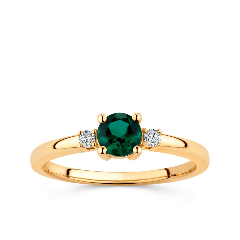 Created Emerald & Diamond Trilogy Ring in 9ct Yellow Gold