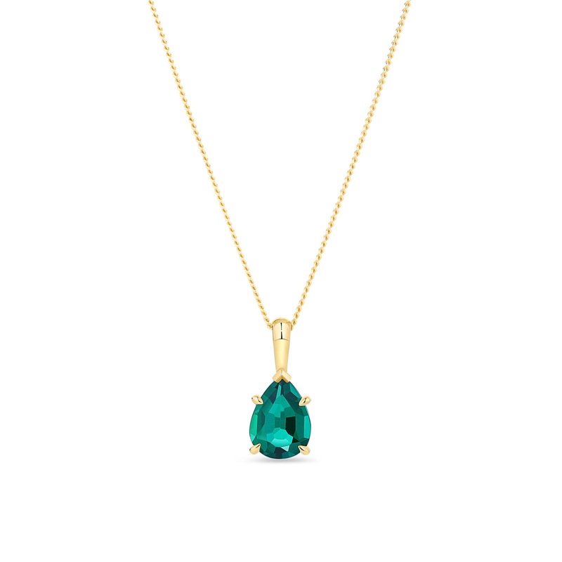 Created Pear Emerald Drop Pendant in 9ct Yellow Gold