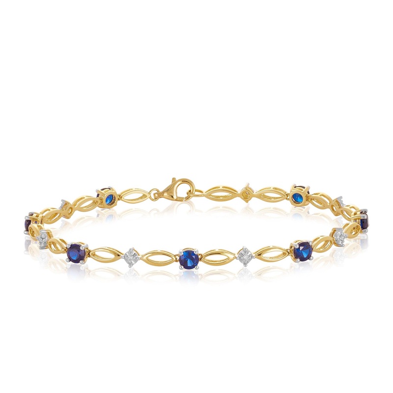 This exquisite 0.06ct TDW Created Sapphire & Diamond Bracelet in 9ct Yellow Gold is a timeless piece of jewellery that will add a touch of sophistication and luxury to your look. The bracelet features a round shape with a polished finish, and is secured wi