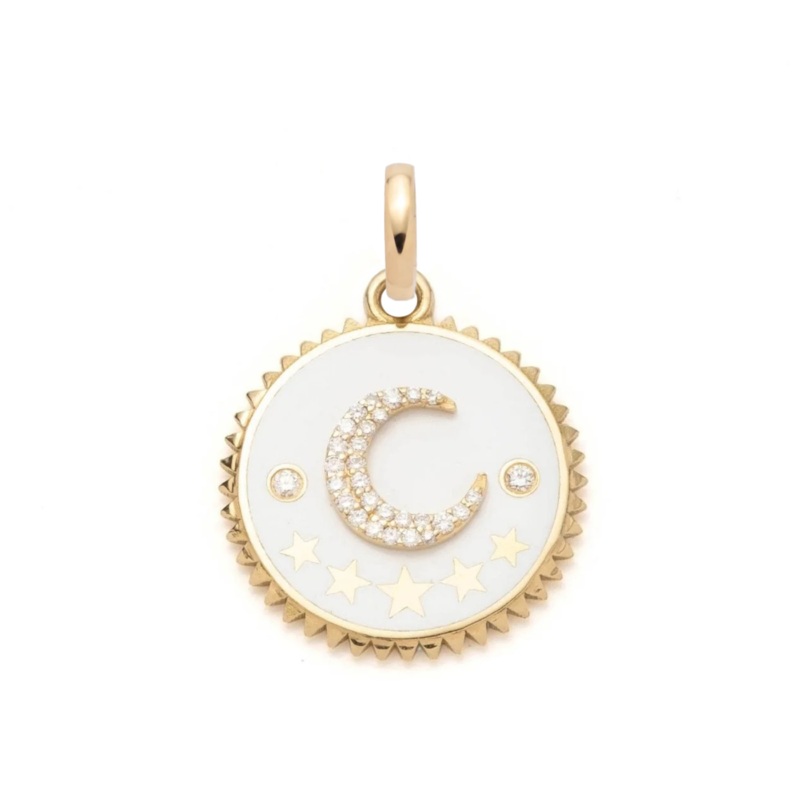 Crafted in 18-karat gold, this Medium Champleve Medallion fused in white enamel represents wholeness. Every day, every moment, we make choices. We have a choice regarding what kind of energy we want to put out there in the world. The symbol of the Crescent Moon was chosen for its Latin root word, crescere, to grow. It reminds us that every day is a new day to grow inwardly by seeking truth and enlightenment.