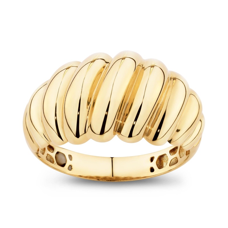 Introducing this exquisite Croissant Ring, crafted from 9ct yellow gold and finished with a polished shine. Perfect for the modern woman looking to add a luxurious touch to her wardrobe, this contemporary piece is sure to make an impact. Showcasing dainty