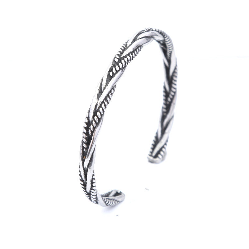 Introducing the Cross-border European and American retro woven twist men's titanium steel bracelet solid opening adjustable retro stainless steel bracelet for men, a perfect blend of style and durability. Crafted with high-quality titanium steel, this brac