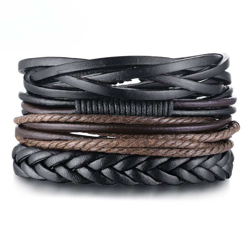 Cross-Border Jewelry Men’s Bracelet PU Leather Woven Set