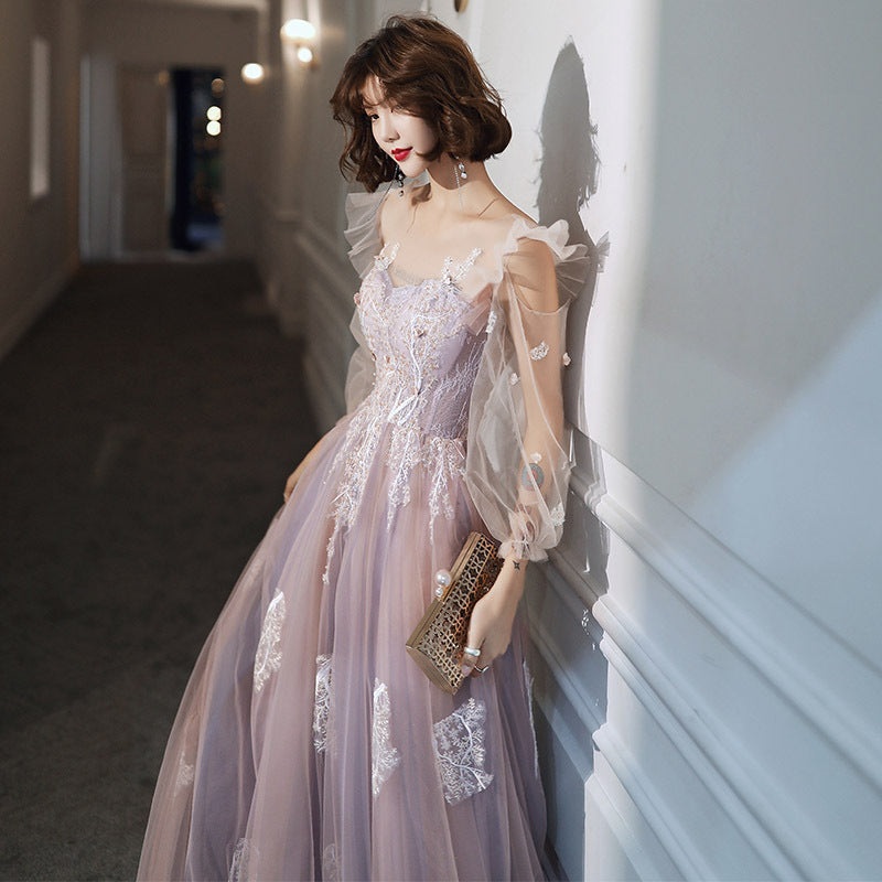 Cute Long Sleeves Lace Prom Dress Fairy Tulle Formal Evening Dress 175