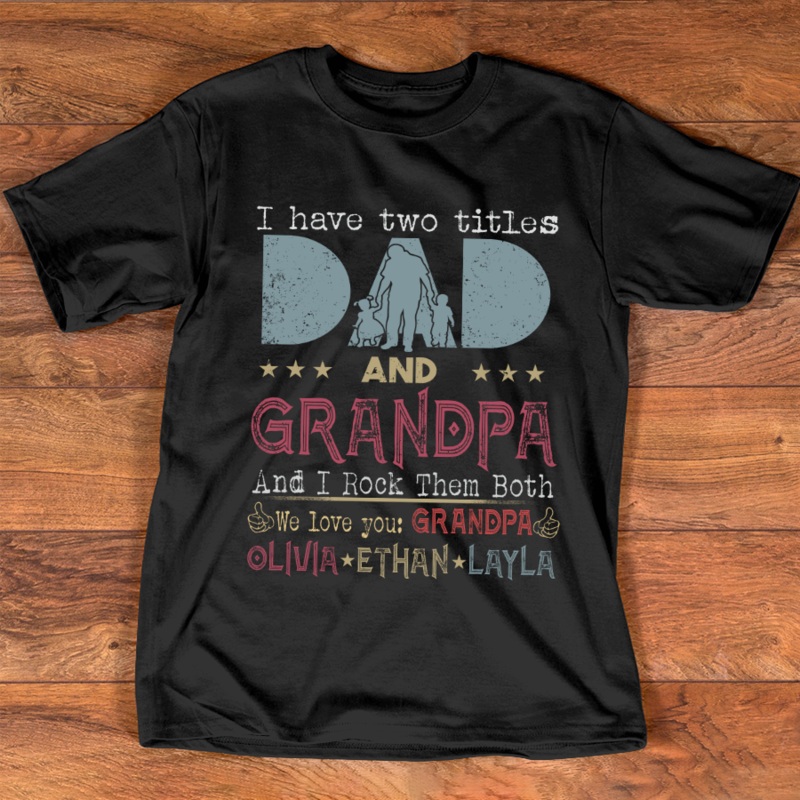 Dad and Grandpa love GrandkidsGreat as Birthday gifts or Holiday presents. This adorable item can be designed upon anyone's wish with any title.Please enter:1. Nickname: Papa, Grandpa, Pawpaw, Pop-Pop, Papaw ...etc.2. Kids' Names wanted on the shirt (Names