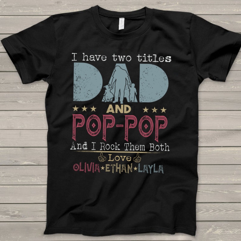 Dad and Pop Pop love GrandkidsGreat as Birthday gifts or Holiday presents. This adorable item can be designed upon anyone's wish with any title.Please enter:1. Nickname: Papa, Grandpa, Pawpaw, Pop-Pop, Papaw ...etc.2. Kids' Names wanted on the shirt (Names