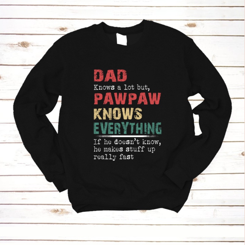 Dad Knows a lot but, Pawpaw Knows everythingCute and Creative Designs: Exquisite and lovely patterns, special elements make the perfect designs. The people who wear them will be proud. At the same time, they also show the love for family.Suitable for many