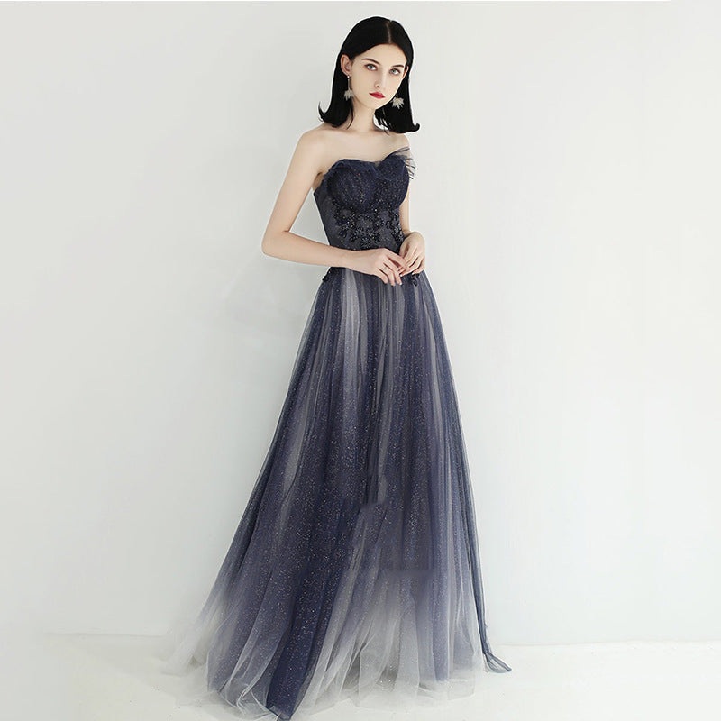 Dark Blue Strapless A Line Prom Dress Sparkly Beaded Evening Formal Gown 636