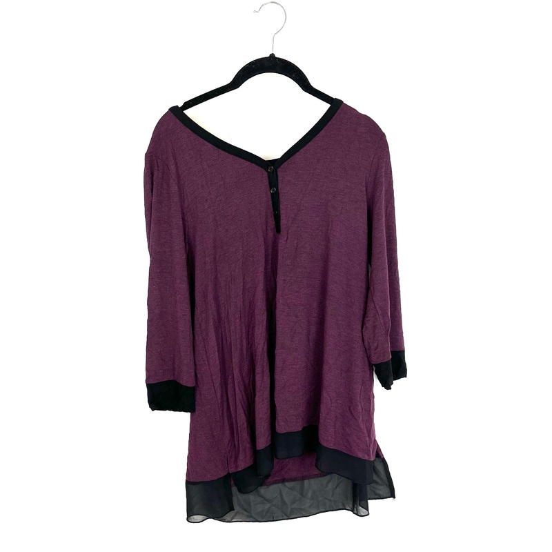 Brand new - donated from the designerDKNY soft and comfy dark burgundy sleepwear set with v-neckline top with quarter button down, black neckline and sleeve, sheer bottom hemline and matching dark burgundy sleepwear bottom with stretchy drawstring waistban