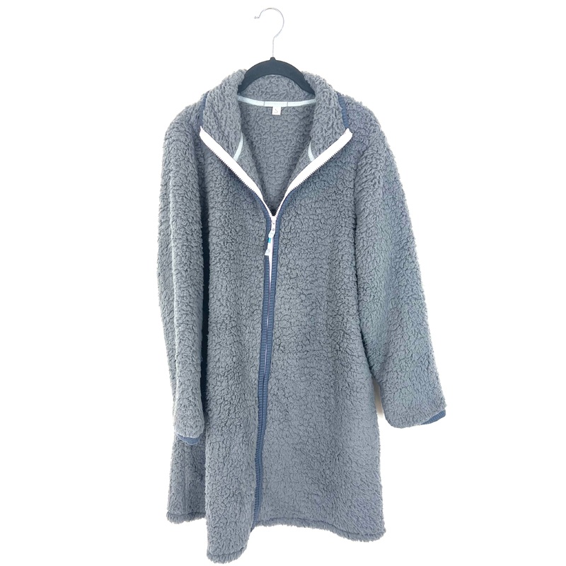 brand new - donated from the designerDark grey ultra soft and cozy sherpa zip up cardigan / robe with long sleeves, pockets and a pink zipperSize Small (Size 4-6)Estimated Original Retail Price: $55*This is a sample piece donated from the designer to suppo