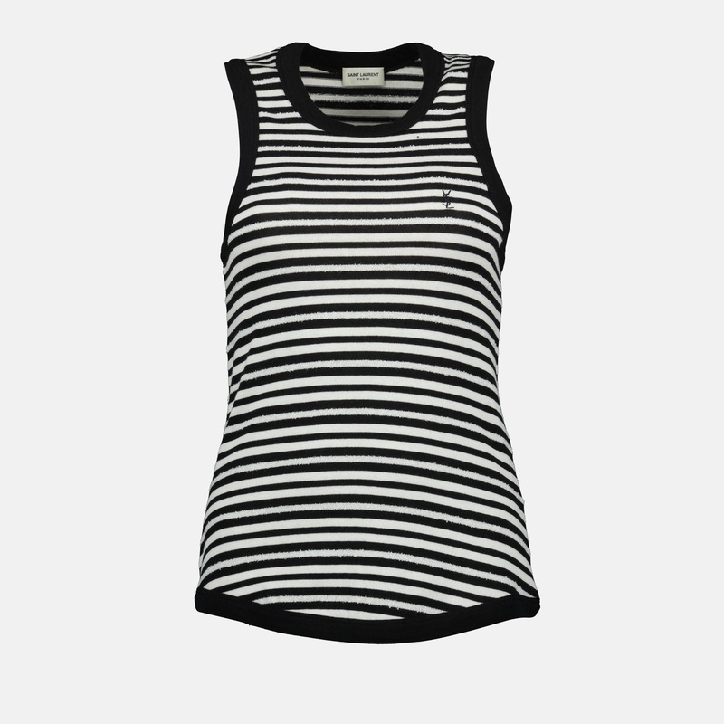 Le dbardeur Cassandre ray de Saint Laurent est un vtement pour femme de la collection Automne-Hiver 2024. Il est ralis en coton, a une coupe slim et des dtails raffins.
