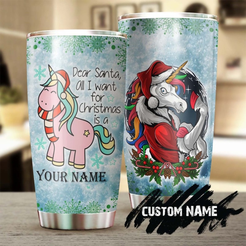 Dear Santa All I Want For Christmas Is A Unicorn Personalized Tumbler-Unicorn Tumbler-Fancy Unicorn Christmas gift for family for kids