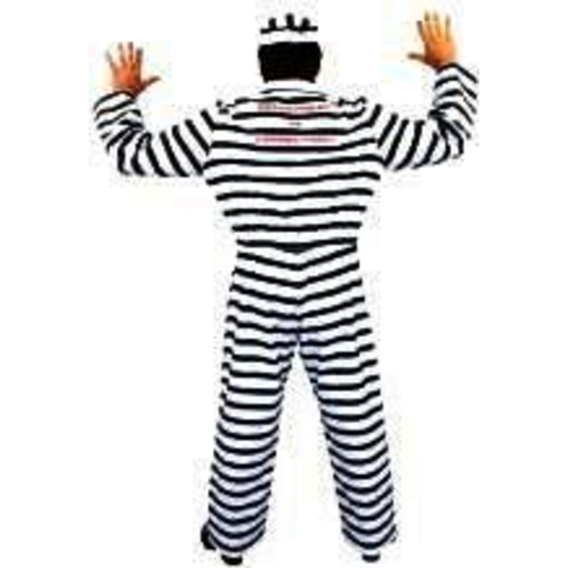 Includes: Black/White jumpsuit with Department of Corrections printed on the back & matching hat.Color: Black/White (shown)Size:M (40-42), L (42-44)