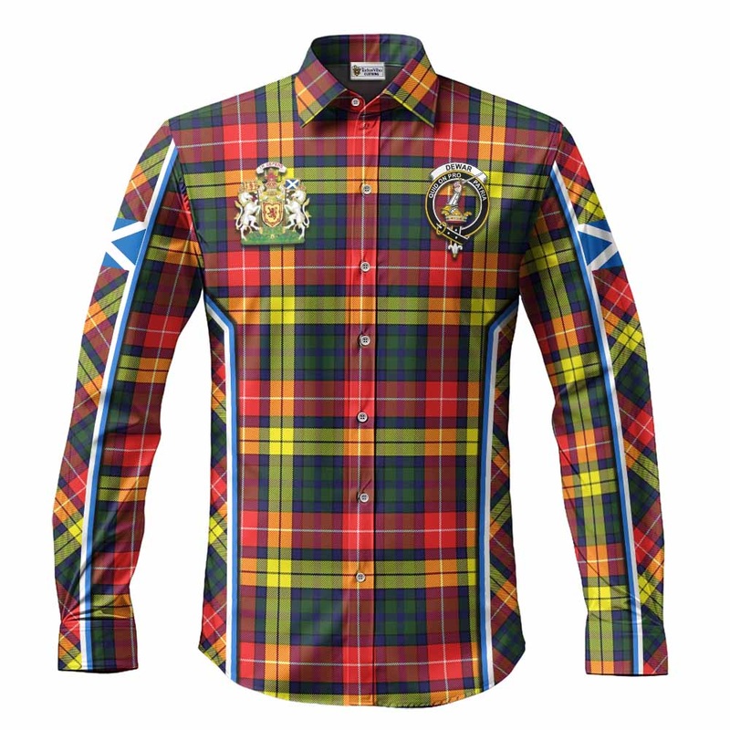 Dewar Tartan Crest Long Sleeve Button Shirts Scotland Coat of Arm Flag Style