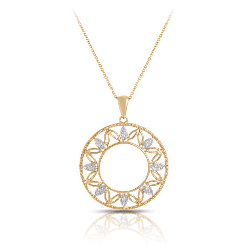 Diamond Circle Leaf Pendant in 9ct Yellow Gold