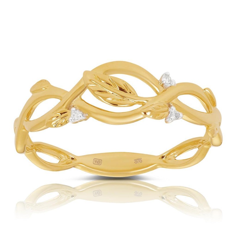 Diamond Leaf Ring in 9ct Yellow Gold