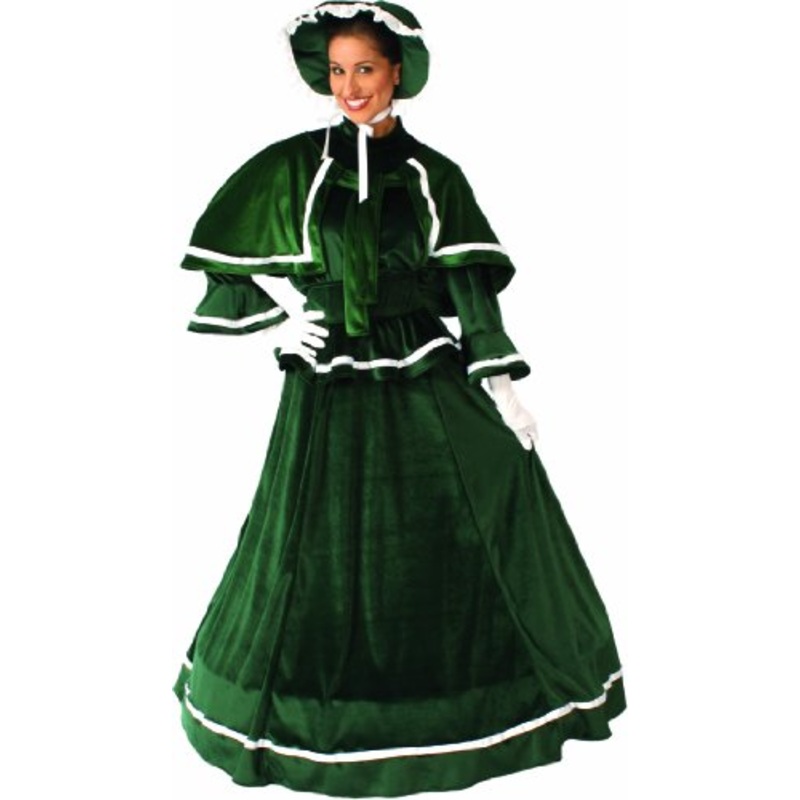 Transport yourself into the Dickens Christmas oftimes past back to the memories of childhooddays, back home to fireside memories of family,friends & mulled cider!Includes: 5 piece luxurious steam velour velveteen skirt accented w/ribbon trim, matching pepl