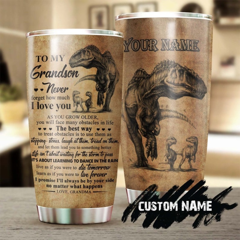 Dinosaurs I'll Be By Your Side No Matter What Happen Personalized Tumbler-Grandson Tumbler-Birthday Christmas Gift for Grandson from grandmaGift of Love: A meaningful gift for your friends, family members, wife/husband, bridesmaid/groomsmen, coworkers on b