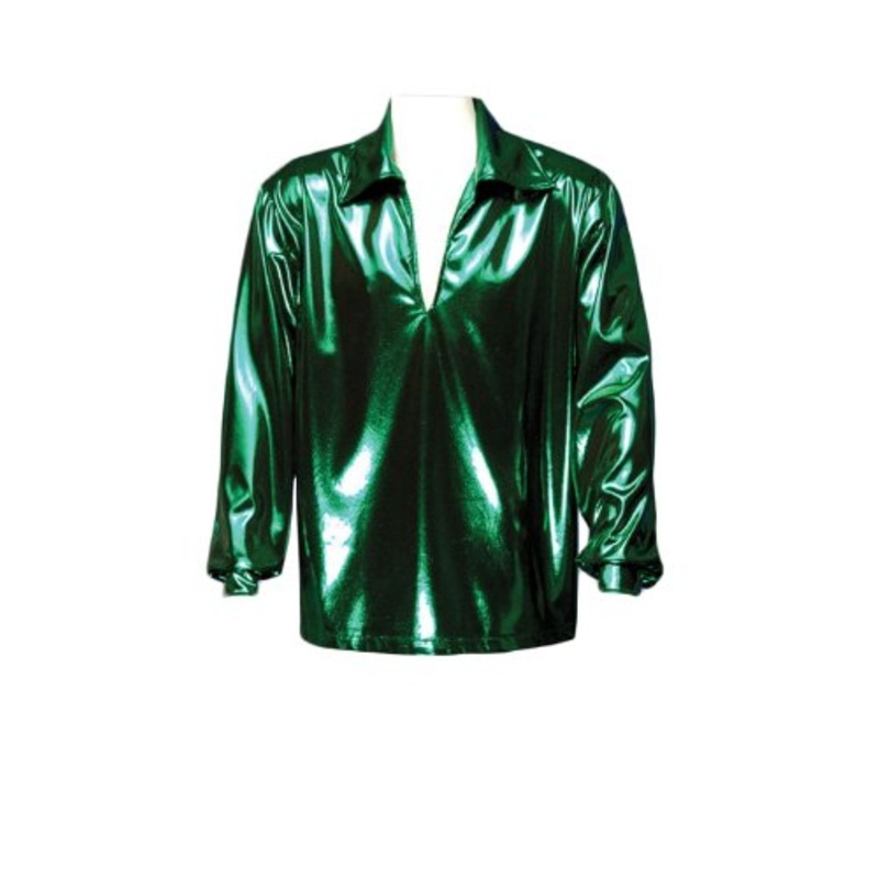 Buy with confidence knowing you will look incredible in this Authentic Retro Disco Theatrical Costume Shirt of Superb quality and craftsmanship.Size (chest): M (40) L (44) XL (48) 2XL (52)Colors: Green, Blue, Fuchsia, SilverMade in the U.S.A. / Flashy poly