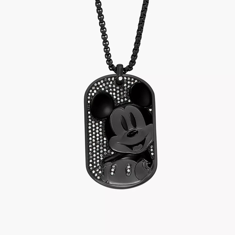 SZO9913713752DISNEY FOSSIL SPECIAL EDITION BLACK STAINLESS STEEL TAG NECKLACE