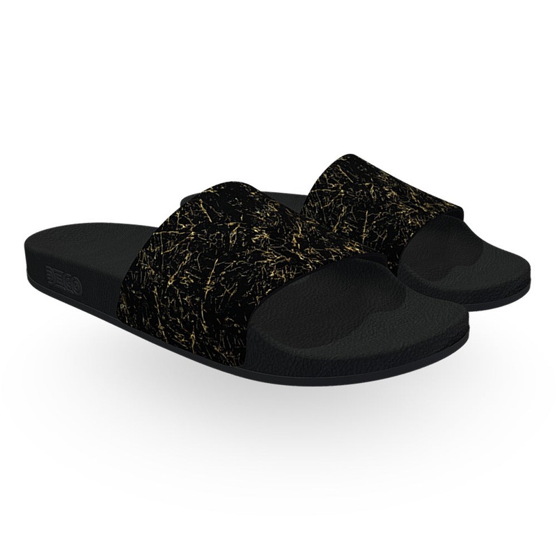 Be the first to review “Distressed Black and Gold Slide Sandals”