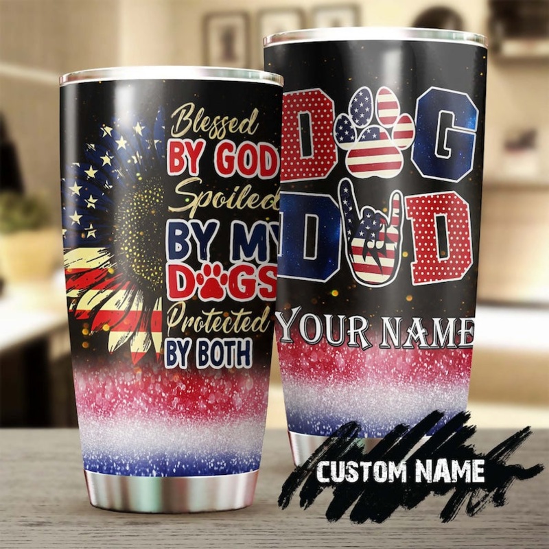 Dog Dad America Blessed By God Spoiled By My Dogs Personalized Tumbler- gift for dog dad father’s day gift- gift for dog lover dog person