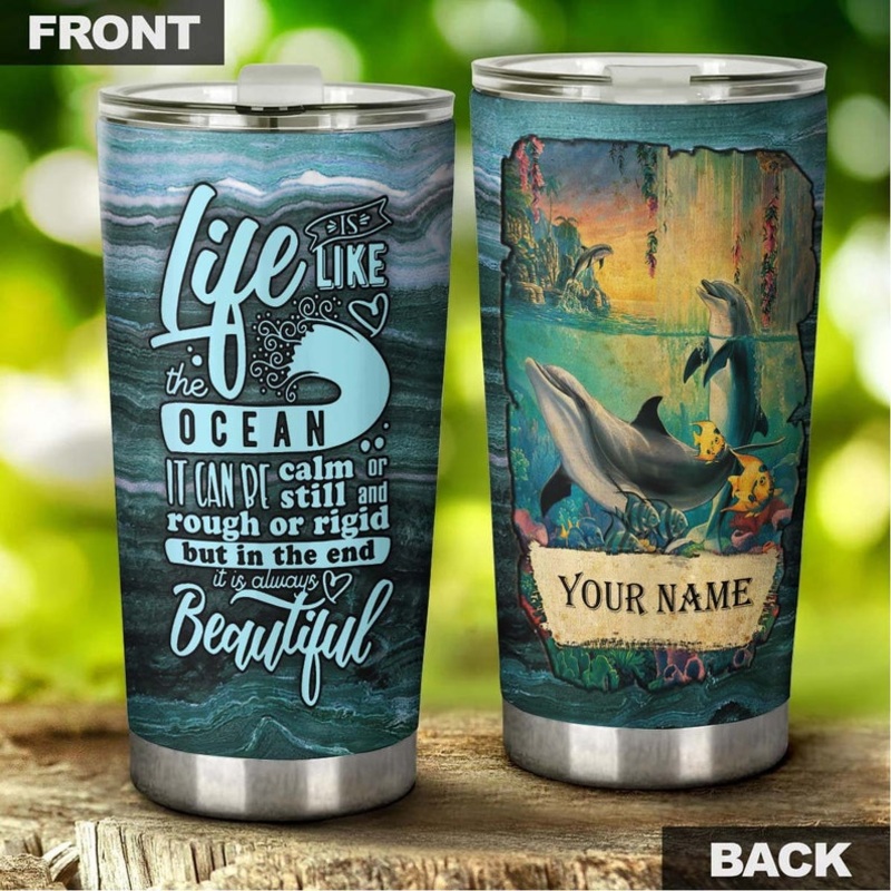 Dolphin Life Is Like The Ocean Personalized Tumbler-Dolphin tumbler-Meaningful Christmas gift Birthday gift for her gift dolphin loverGift of Love: A meaningful gift for your friends, family members, wife/husband, bridesmaid/groomsmen, coworkers on birthda
