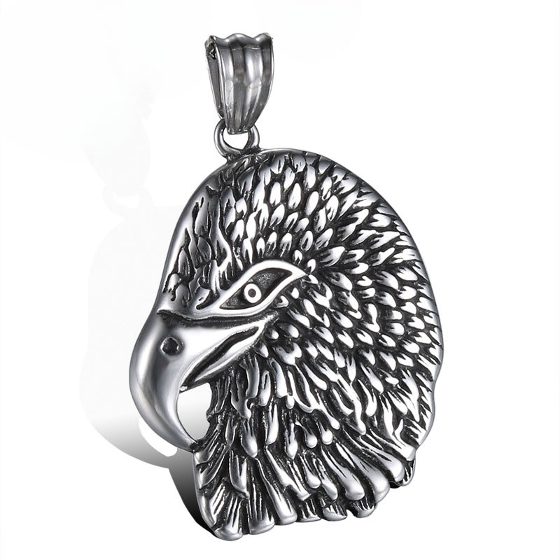 Dominant Retro Men’s Titanium Steel Eagle Head Pendant – European and American Fashion
