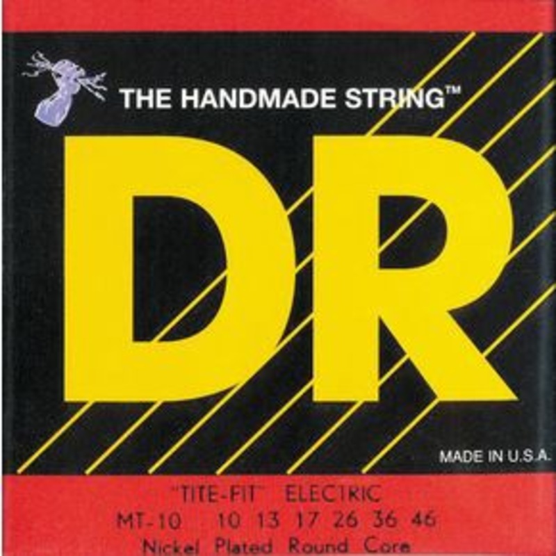 Nickel Plated Electric Guitar Strings wound on Round Cores Tite-Fit round-wound nickel-plated electric guitar strings are designed to be a great all-around string. They are available in a wide range of gauges. Based upon a round core, the construction techniques for the Tite-Fit electrics are very old. However, the core wire and wrap wire in DRs are the latest, most advanced and expensive metals available. For flexibility, for tone, for long life: for Rock, Blues, Heavy metal, Jazz. Tite-Fits are a wonderful all-around string. Gauge: 10-13-17-26-36-46