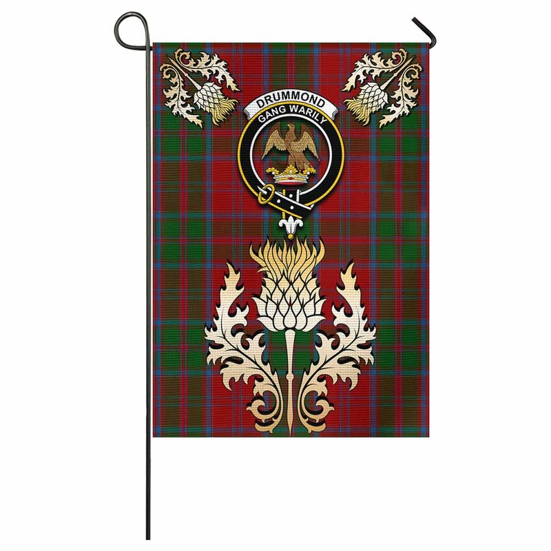 Drummond Tartan Garden Flag with Golden Regal Scottish Thistle EmblemEmbrace your Scottish heritage with the Garden Flag a vibrant emblem of culture, tradition, and pride. Designed for those who cherish their ancestry, this flag speaks to everyone who feel