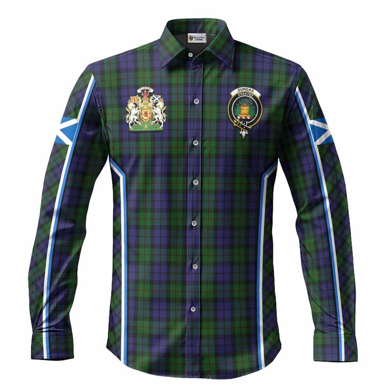 Dundas Tartan Crest Long Sleeve Button Shirts Scotland Coat of Arm Flag Style