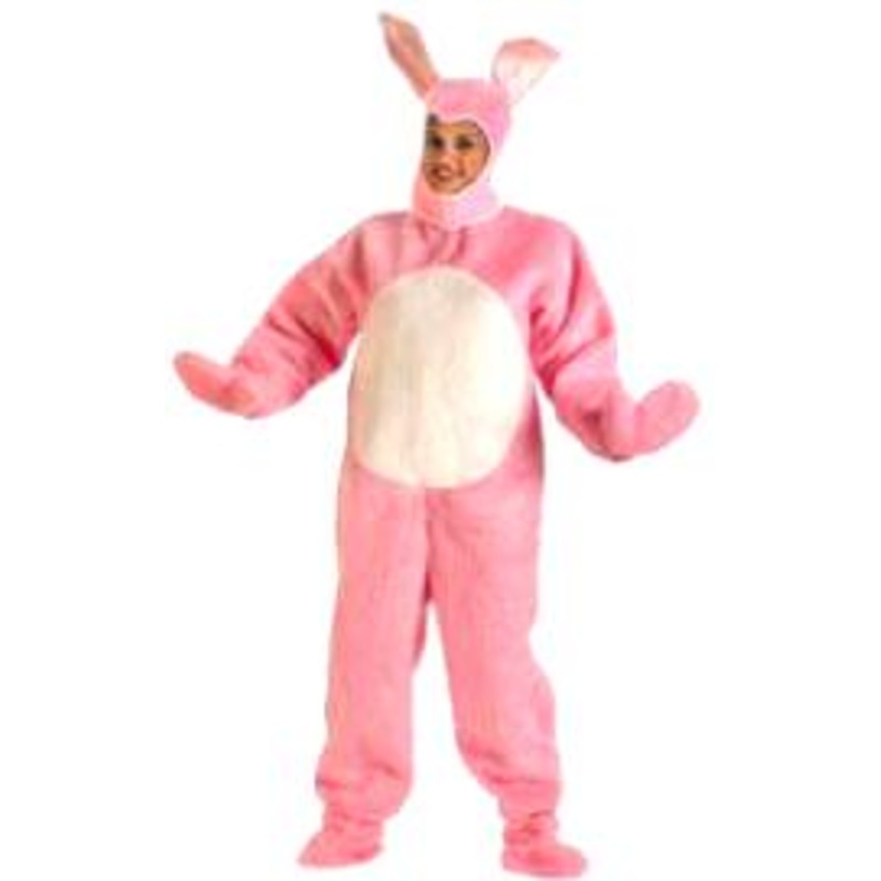 Includes: Pink acrylic pile plush fur jumpsuit w/zippered back, white acrylic pile plush tummy, white pom-pom cotton tail, open face fur hood/head w/velco closure under chin,fur shoe covers & mittens.Color: Pink w/White BellySize (Chest/Waist/Body/Inseam/S