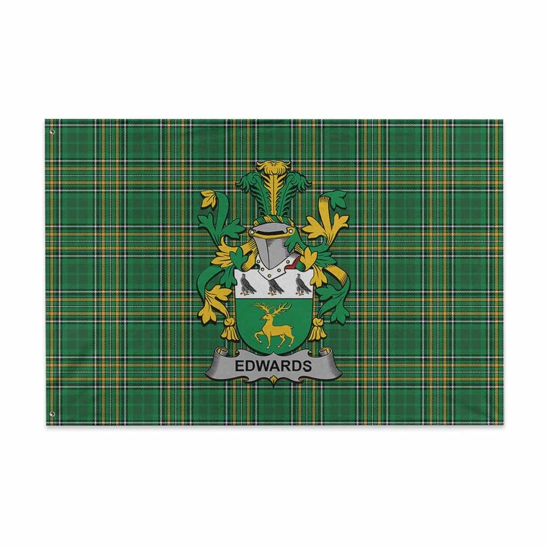 Edwards Irish Clan Tartan House Flag with Coat of Arms