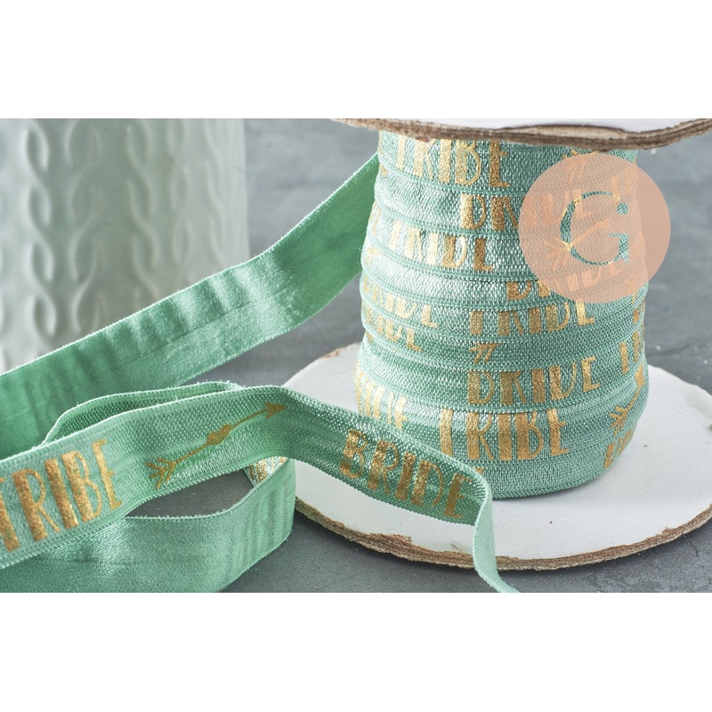 EFJF 16mm green gold elastic ribbon, EVJF bracelet, wedding ribbon, creative supplies, scrapbooking, x1 meter (G8238)